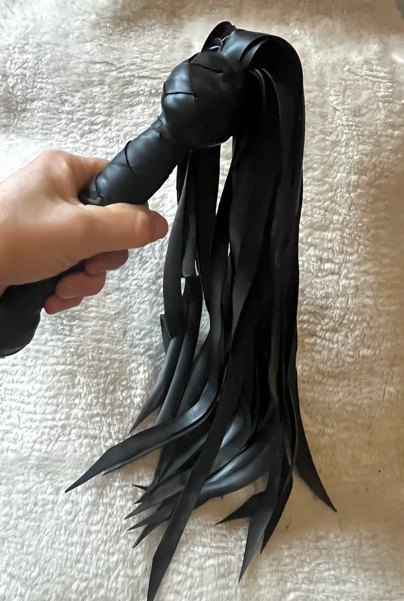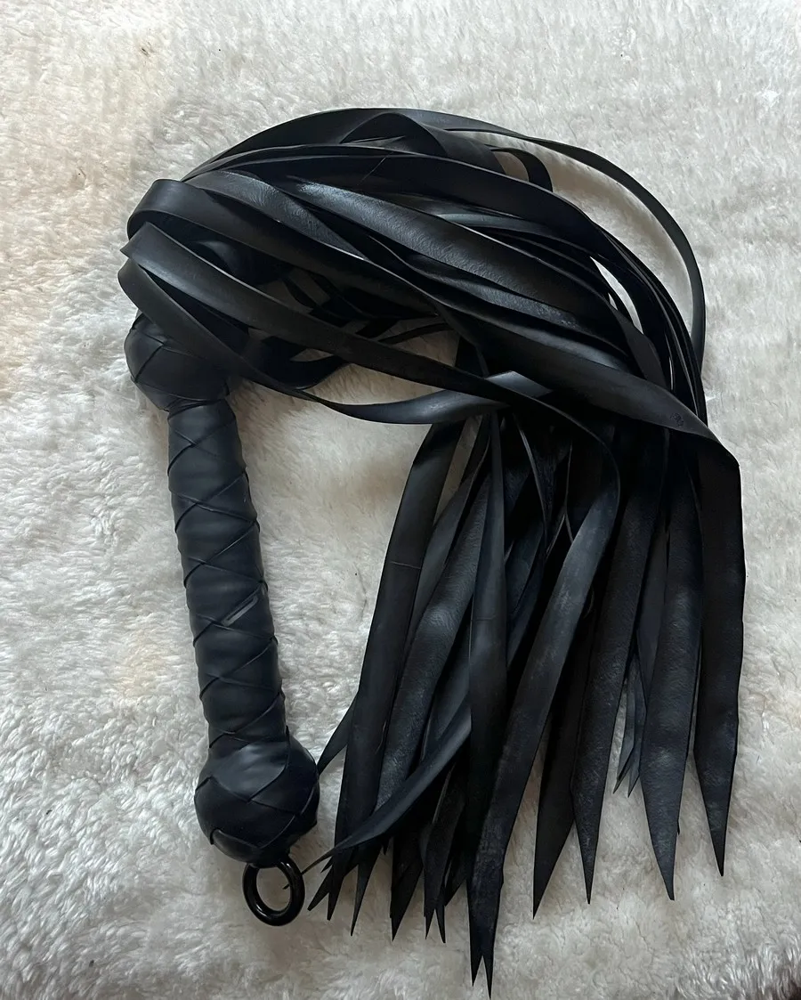 This braided flogger is made from upcycled bicycle inner tubes, with a ring so you can carry it with you or hang it on the wall. The flogger has a perfect weight balance and is very sturdy. A great toy for subs and Doms, or simply to spice up your bedroom...