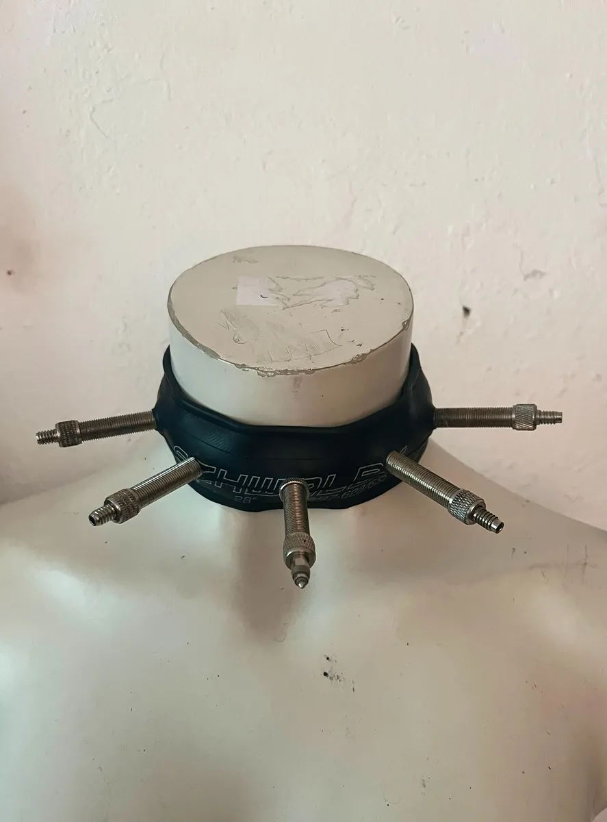 This eco-friendly choker is crafted with care from upcycled bicycle inner tubes and valves. For bike lovers, or for people who don’t like to hug ;-)