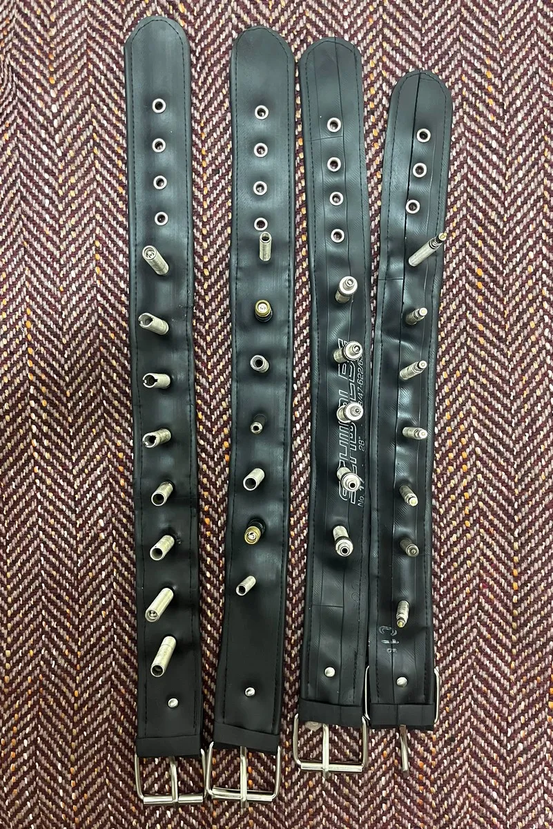Each choker is one-of-a-kind, with slight variations in size and appearance due to the nature of the inner tubes. Let me know if you have preference for a certain valve - presta, schrader or woods (I might not have everything though!) or a mix.