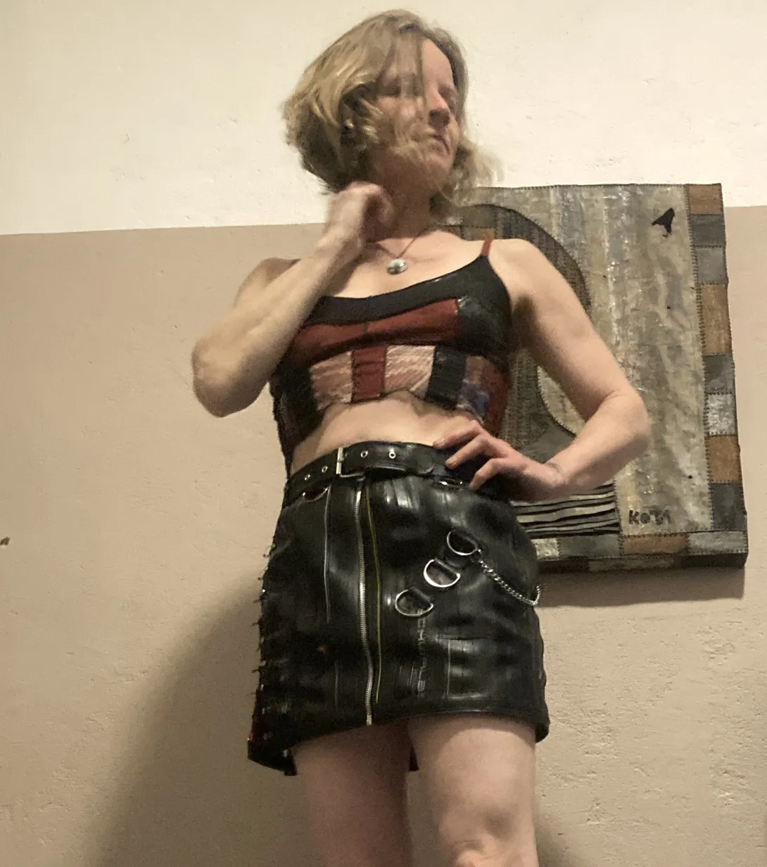 The skirt is lined with cotton and has a little secret pocket (4x6 cm) for condoms, money, etc. The skirt shown is a size M (waist 74 cm) and 32 cm long - any size can be made just send your measurements. Specific requests may also be possible.