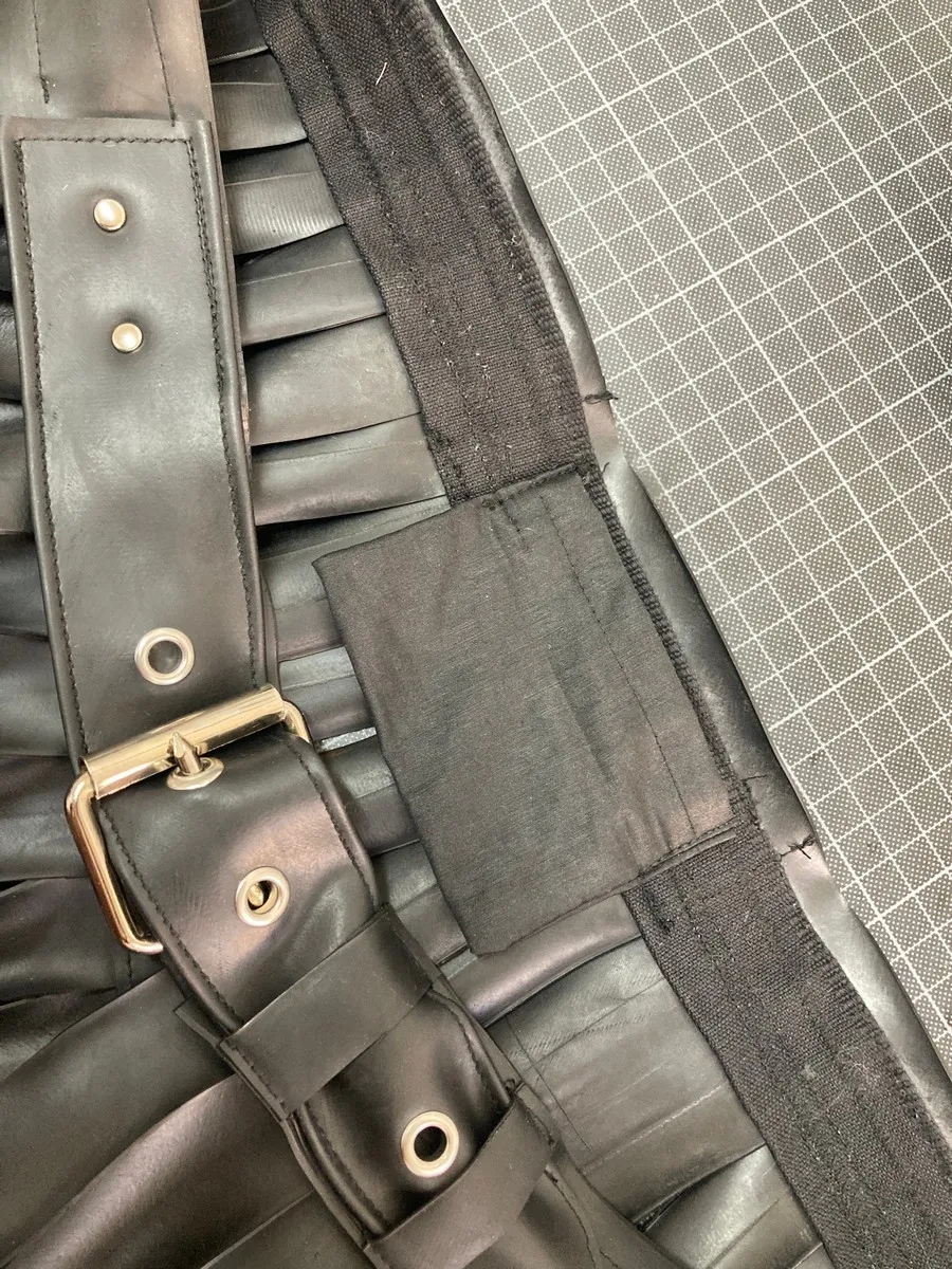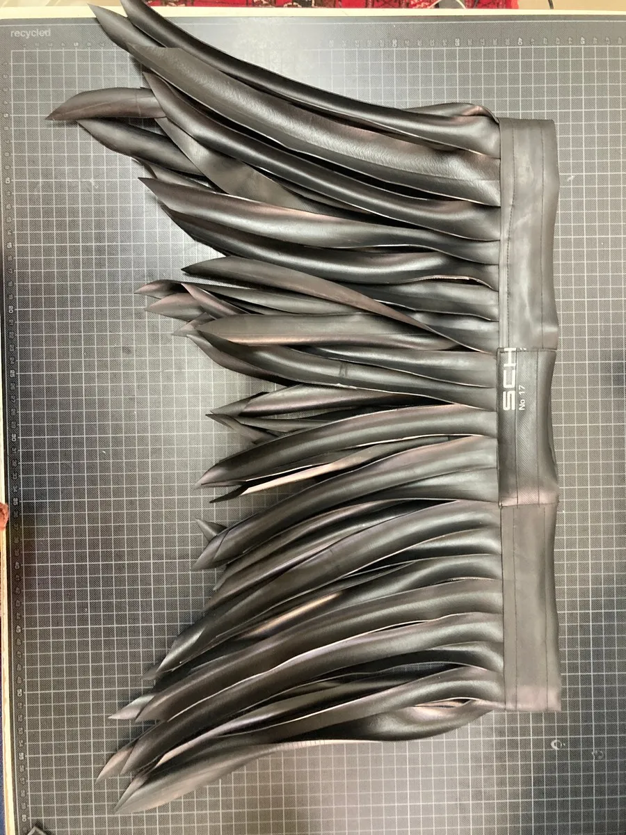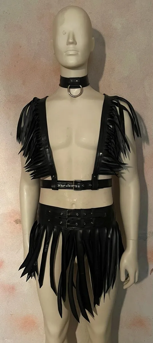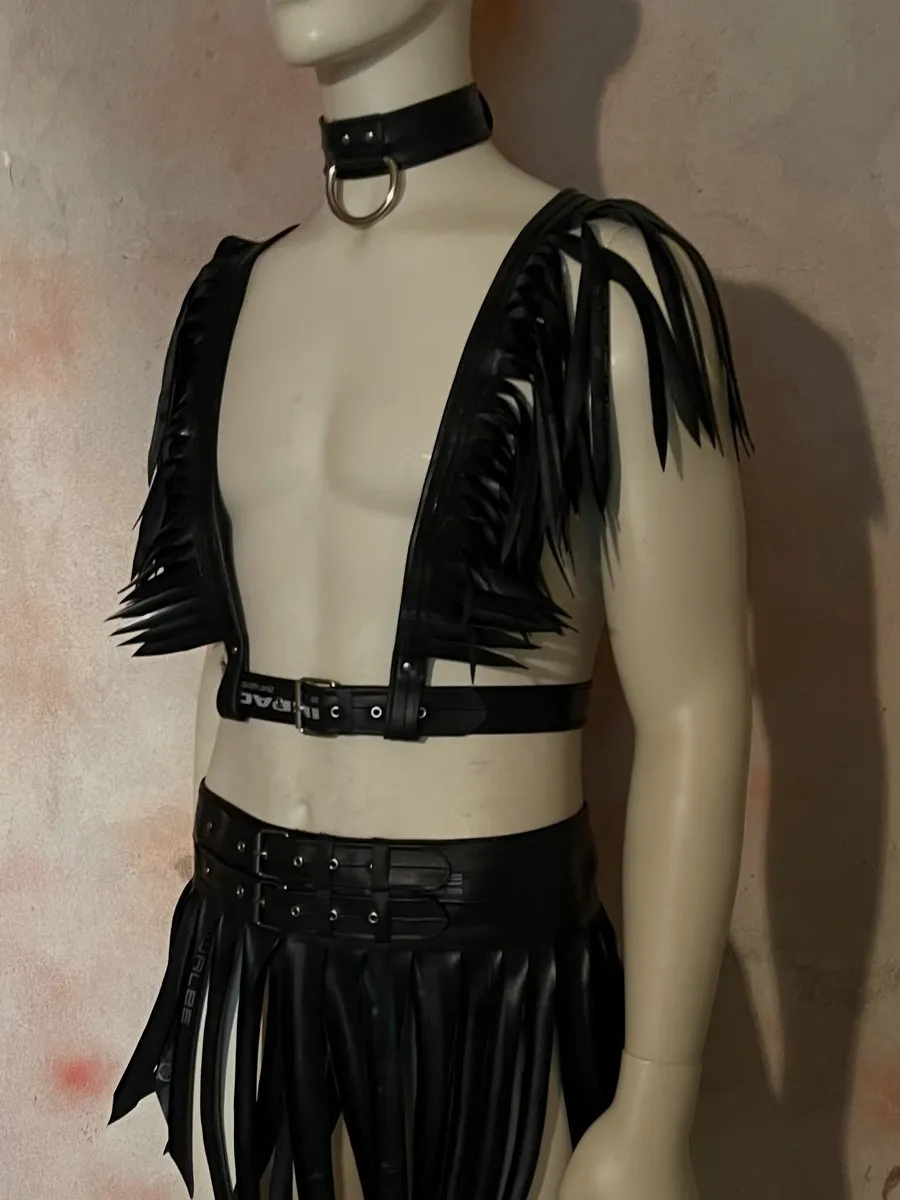 Fringe skirt (gladiator/warrior style) made from upcycled bicycle inner tubes. Inner tubes look like leather, but are vegan and sustainable. This unisex model looks great on everybody and perfect for a night out.