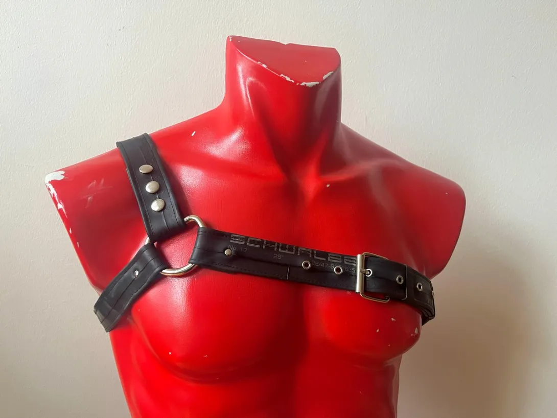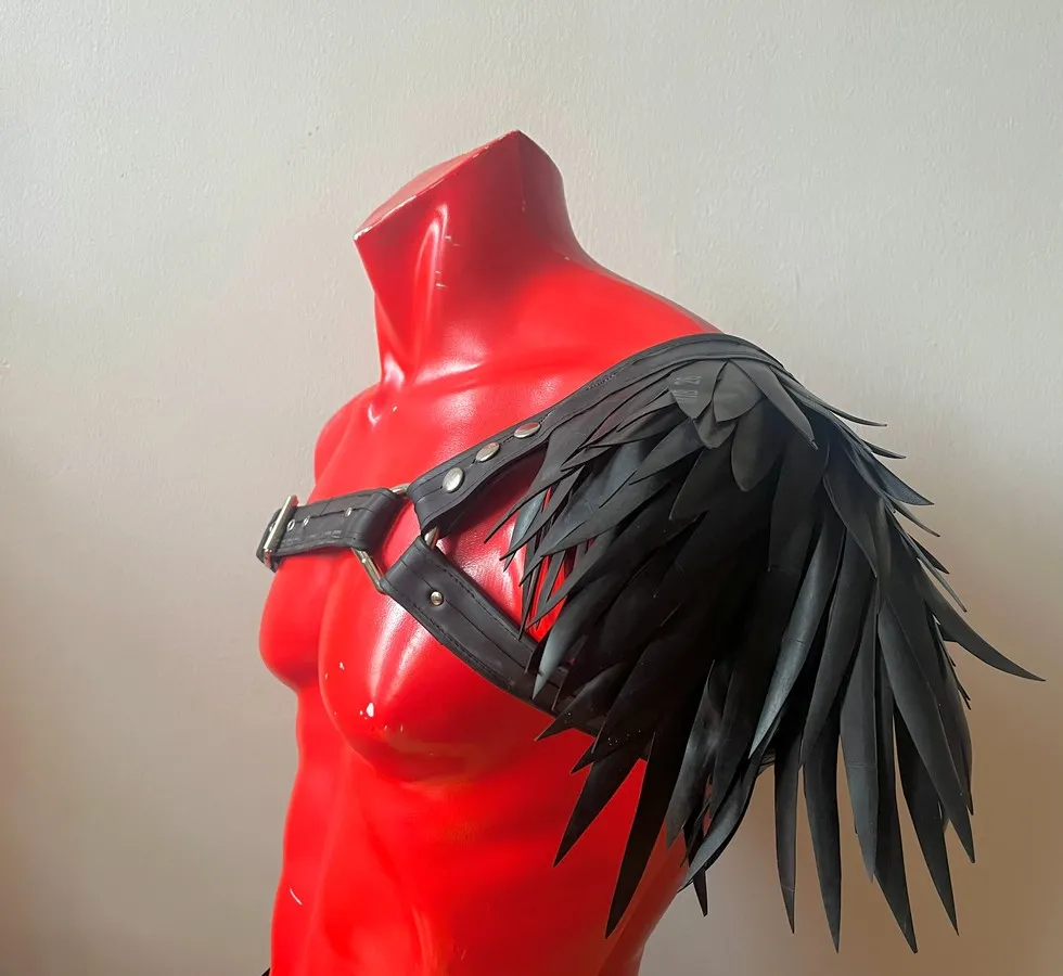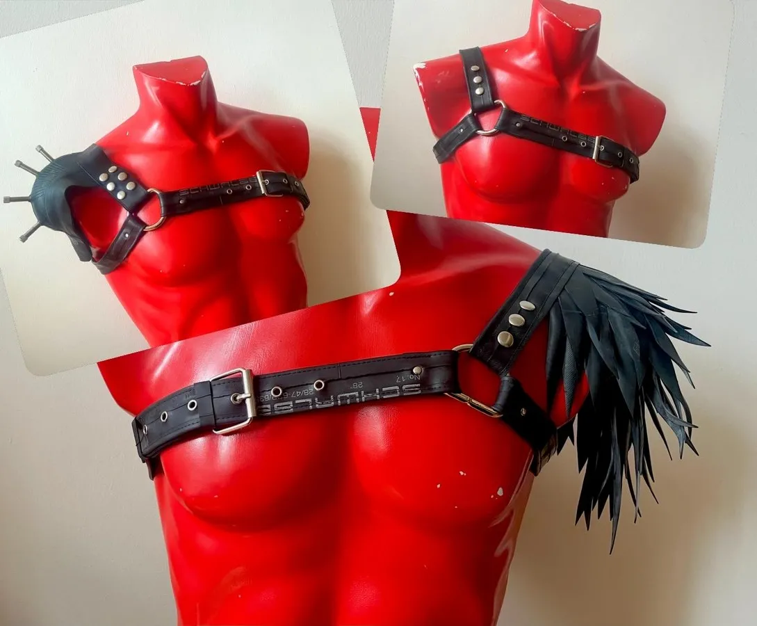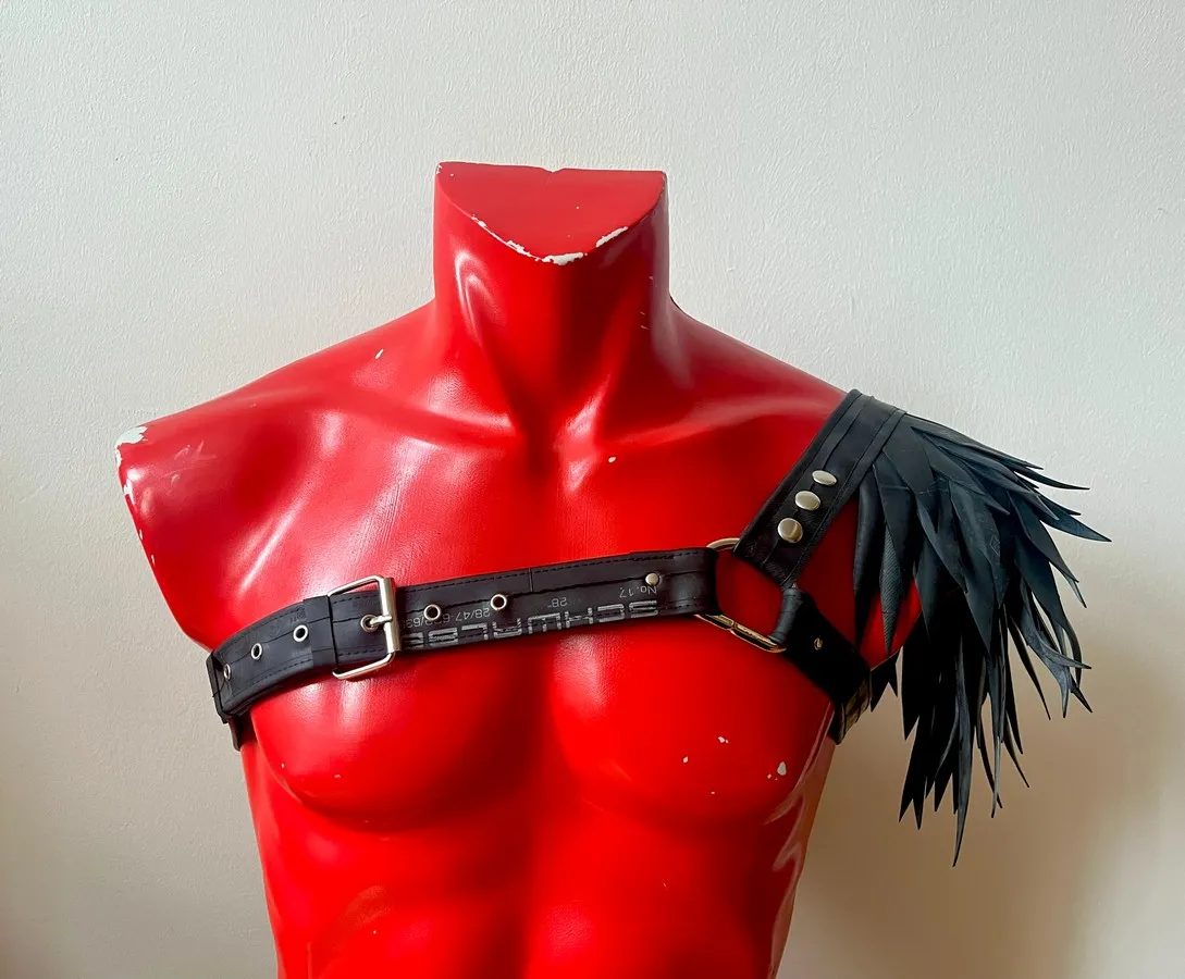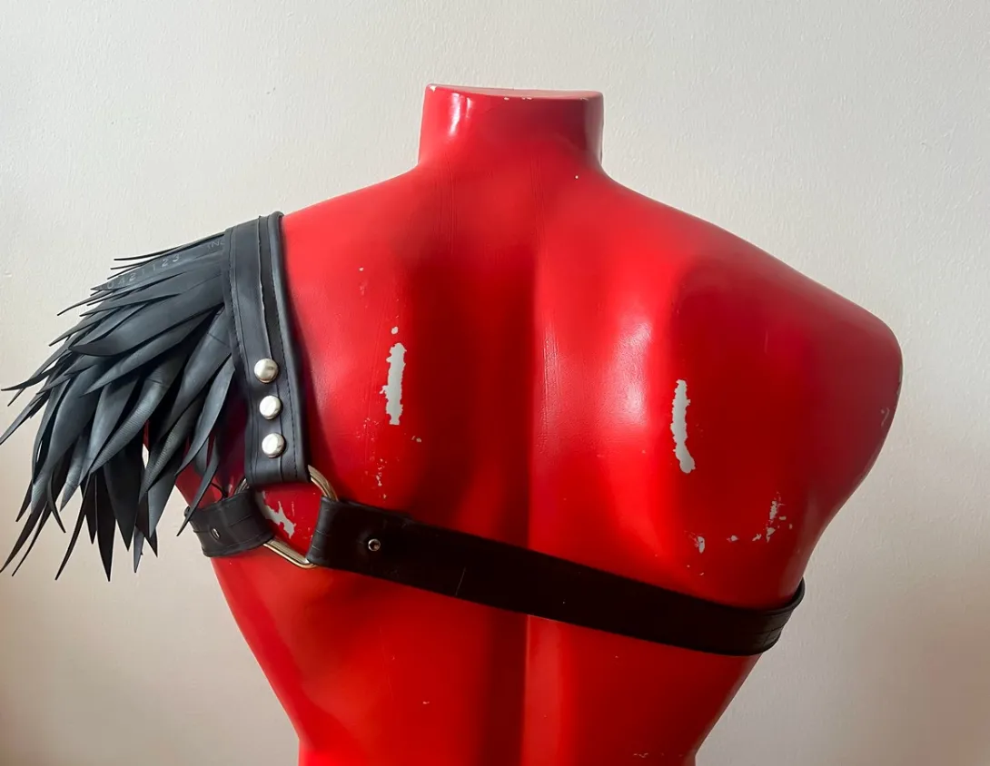 The pieces are attached to the basic harness with snaps. You can wear the harness on your left of right side. Due to the modular nature of the harness, you can also buy an extra basic harness for a friend or partner (yes, it's unisex!) and share the shoulder pieces. Or simply get another size when you grow or shrink...