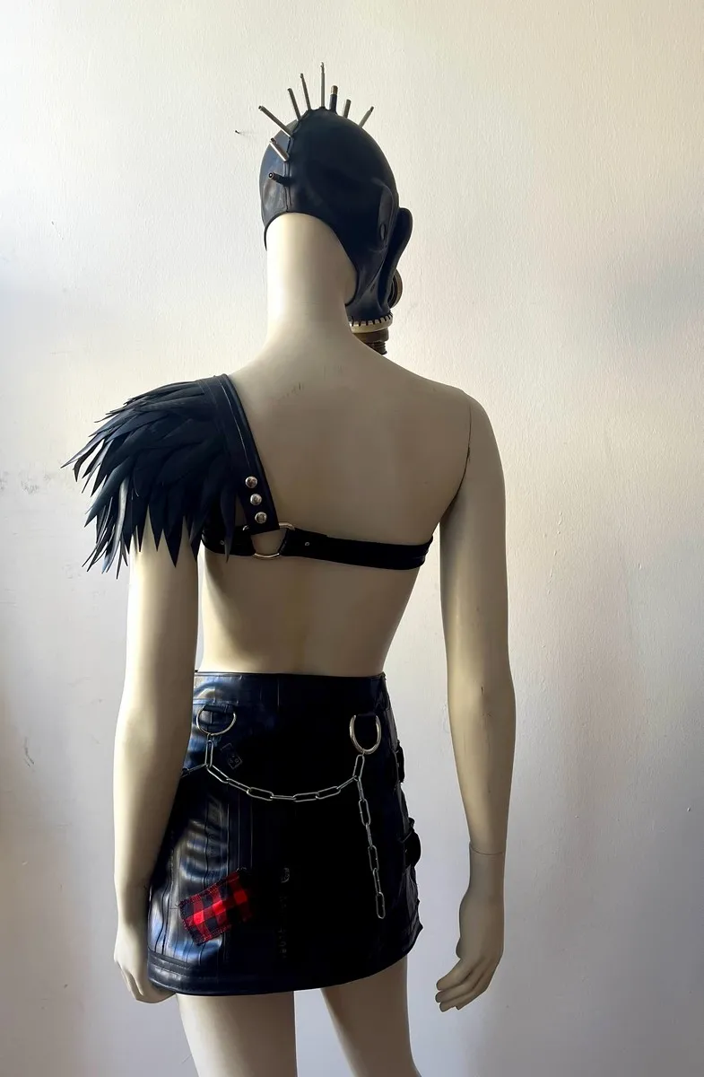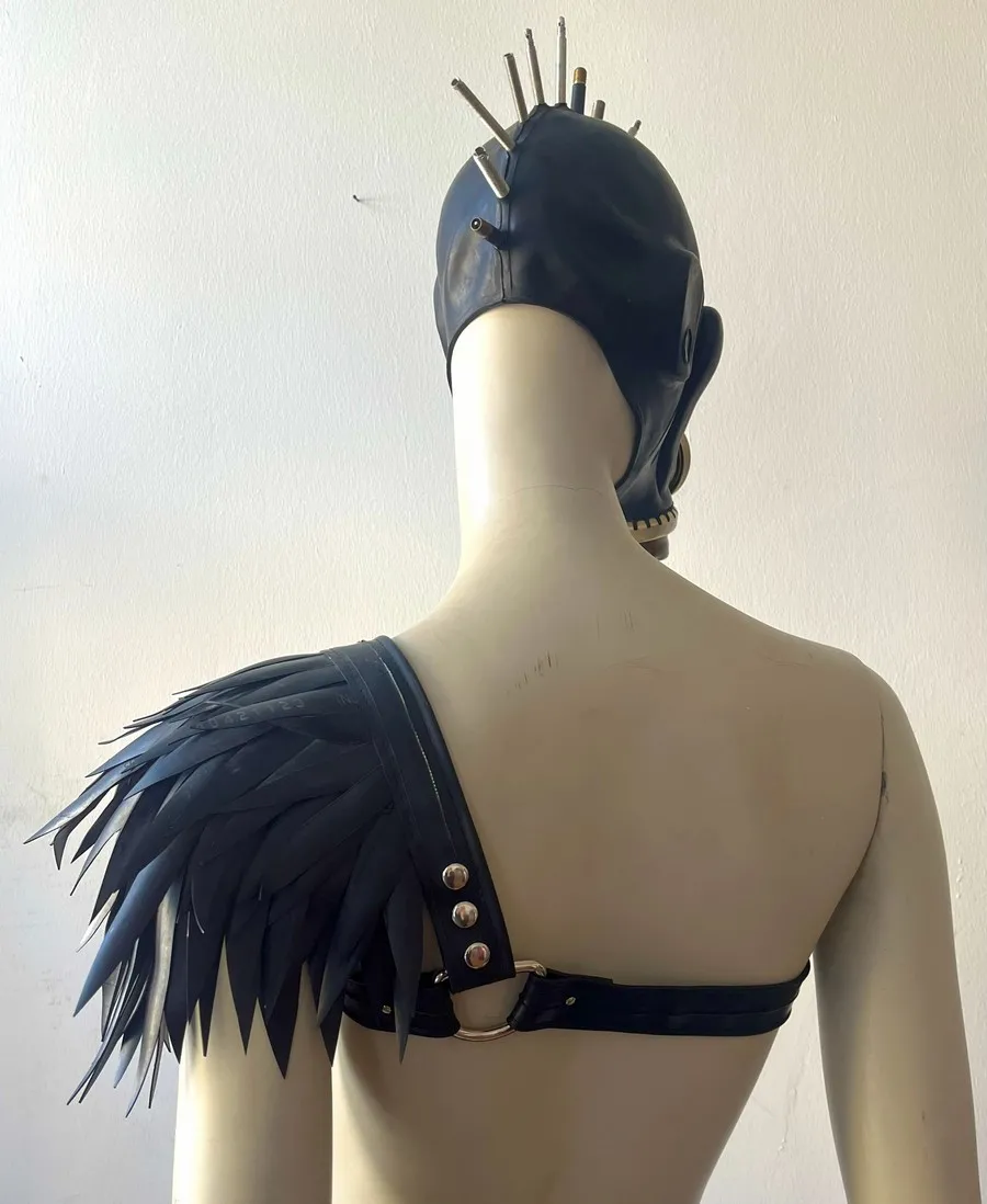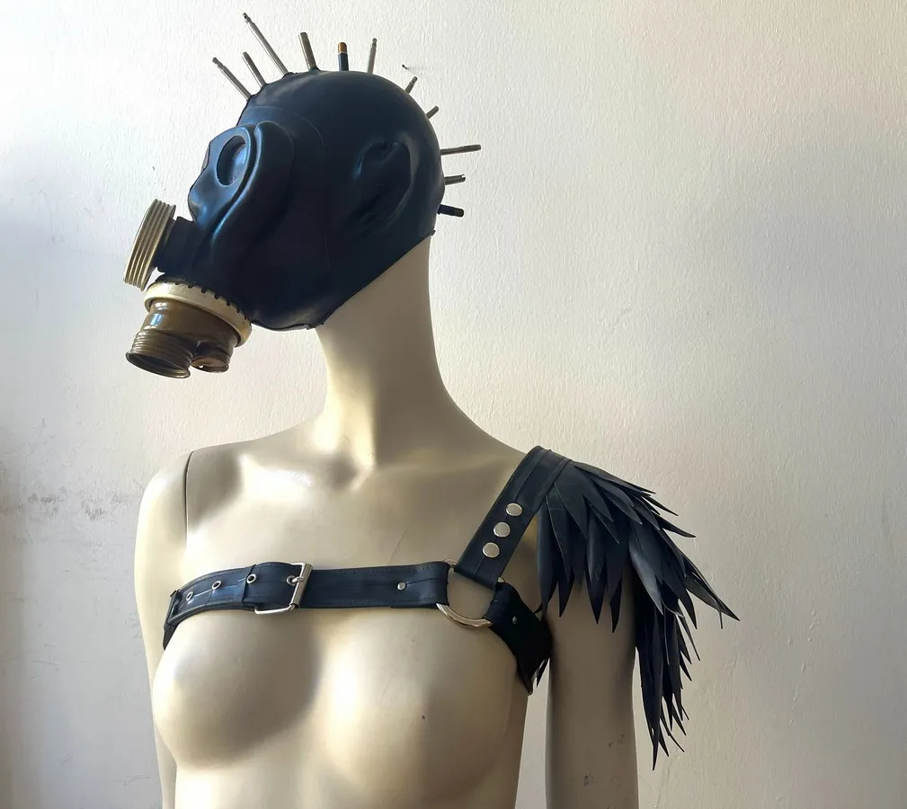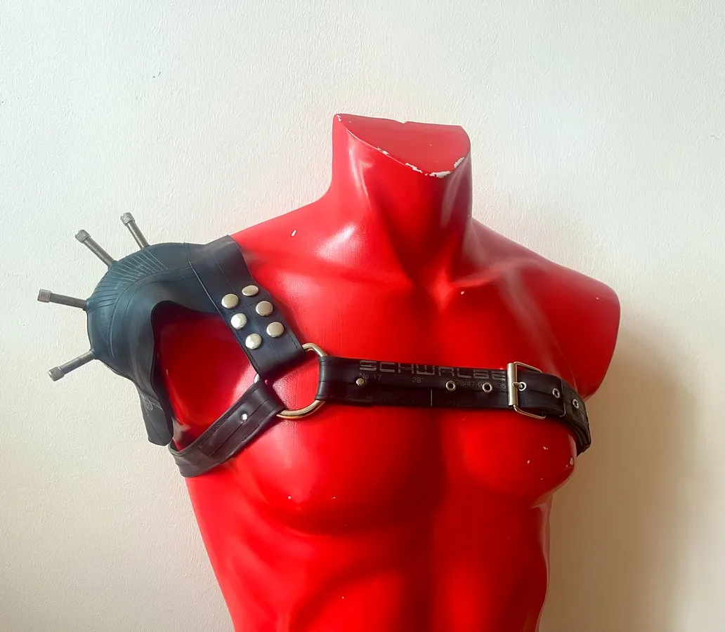 The pieces are attached to the basic harness with snaps. You can wear the harness on your left of right side. Due to the modular nature of the harness, you can also buy an extra basic harness for a friend or partner (yes, it's unisex!) and share the shoulder pieces. Or simply get another size when you grow or shrink...