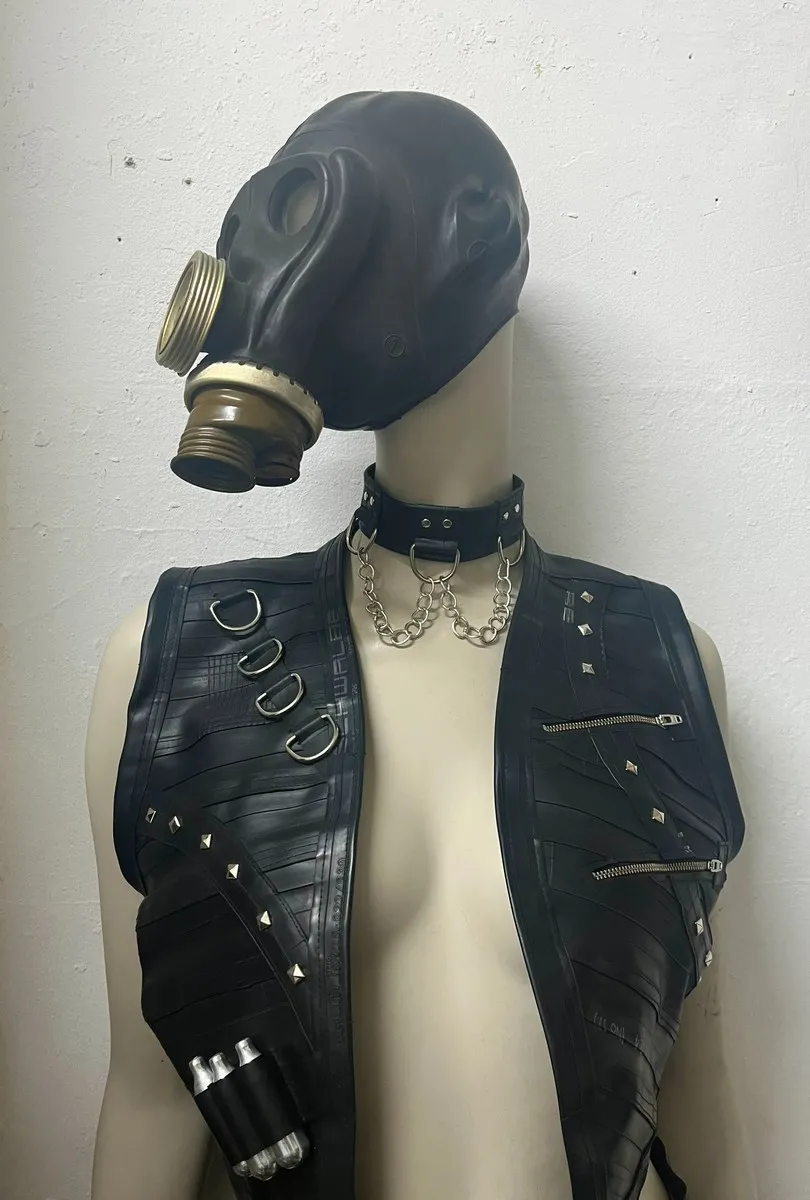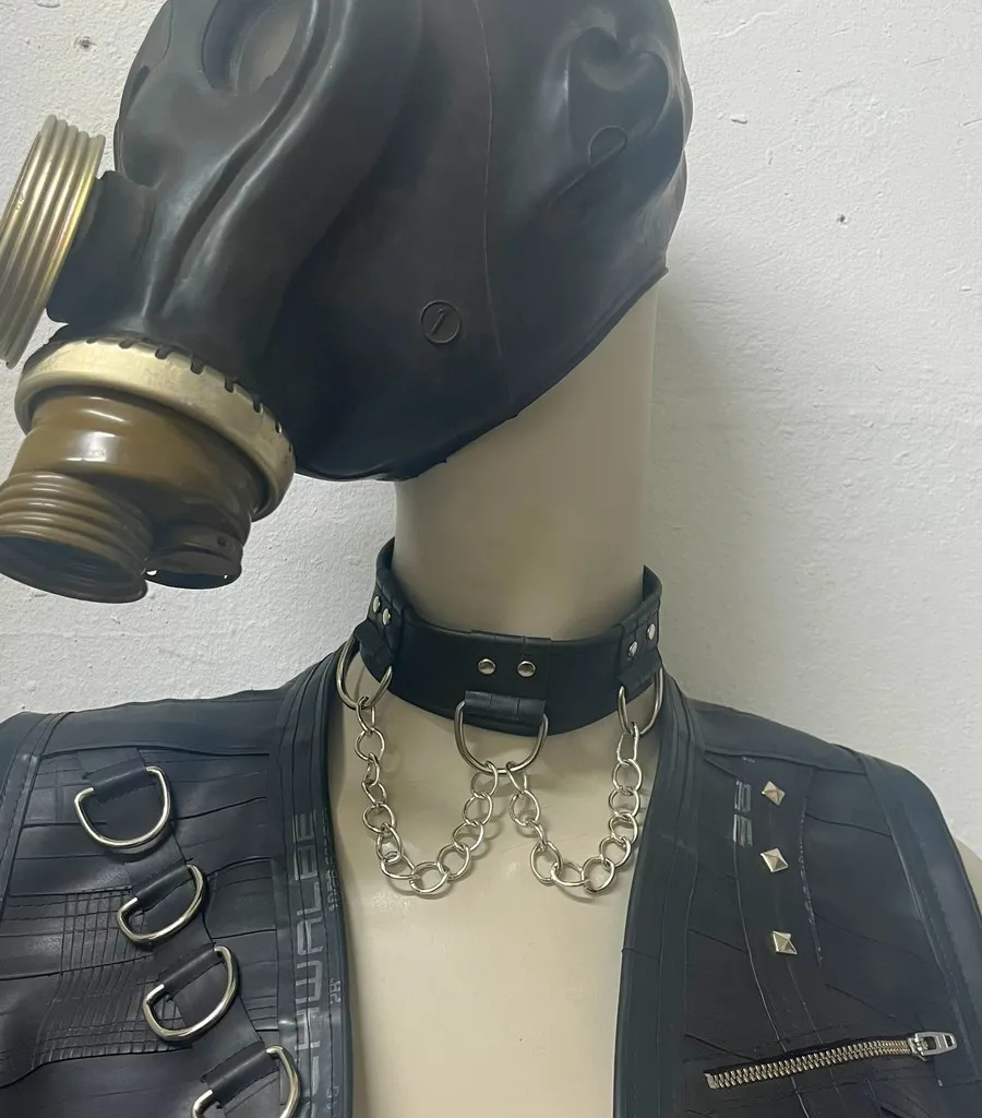 Rings and chain choker from Upcycled Bicycle Inner Tube, handmade kinky gear from Berlin